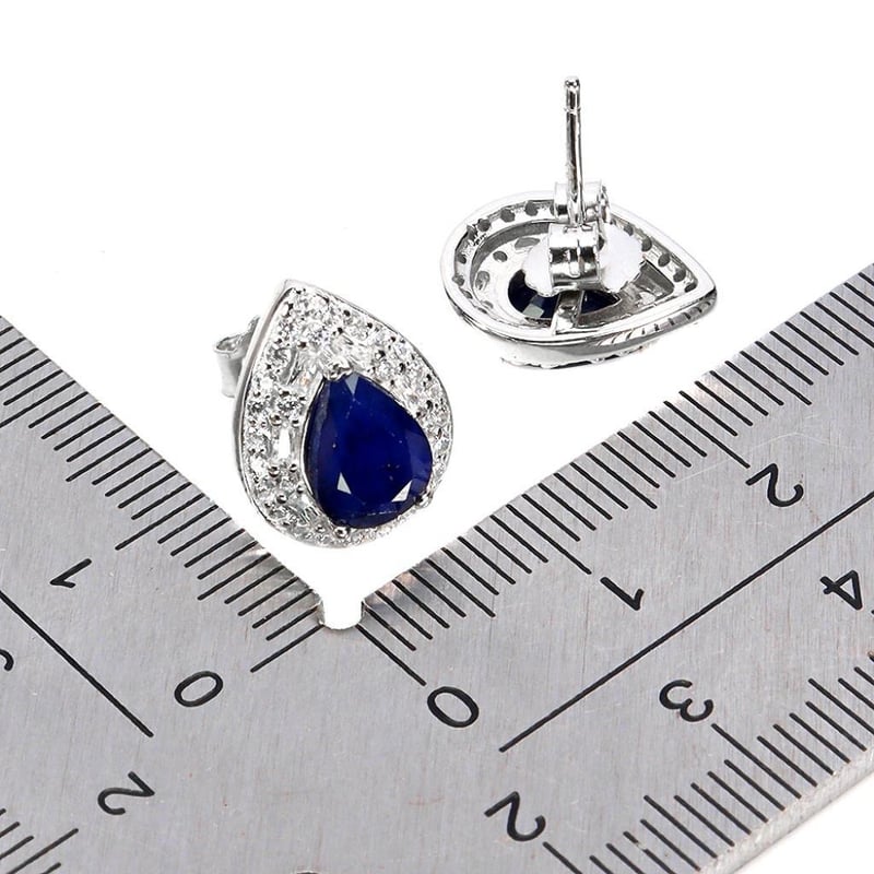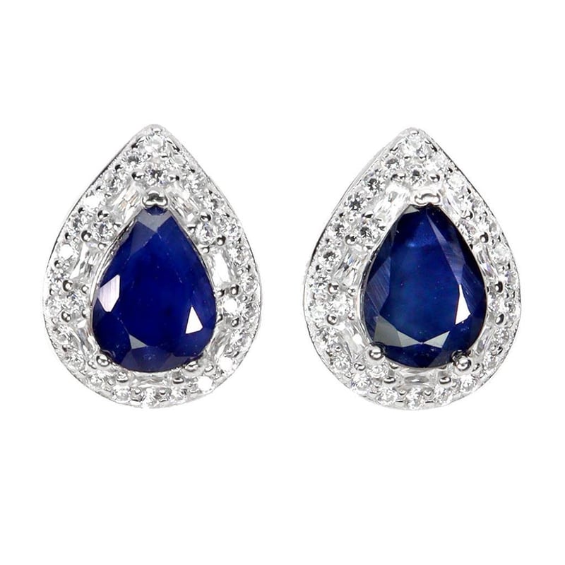 Made In Solid Sterling Silver And Plated In14K White Gold. Features Natural Midnight Blue Sapphires And Sparkling Czs. Earrings Measure 13X10Mm