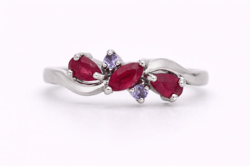 NATURAL RUBY & TANZANITE RING ON 925 SILVER - WITH CERTIFICATE
