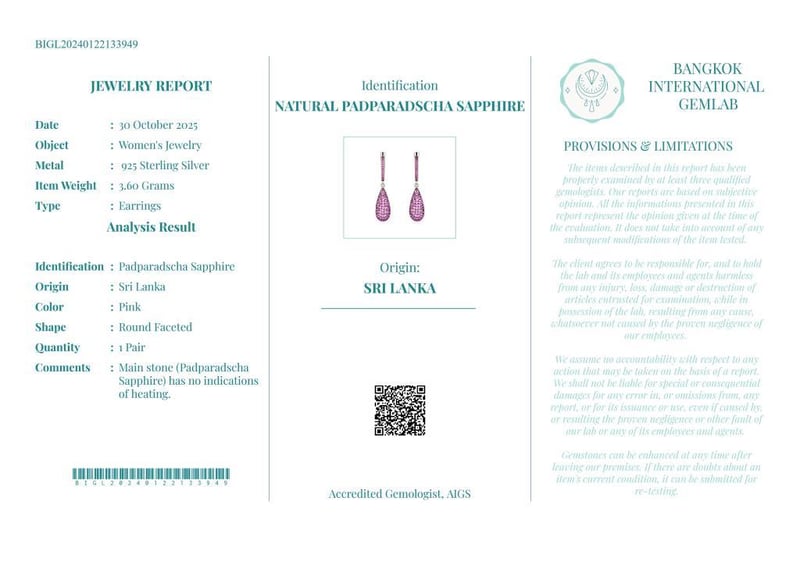 Comments : Main Stone (Padparadscha Sapphire) Has No Indications Of Heating.