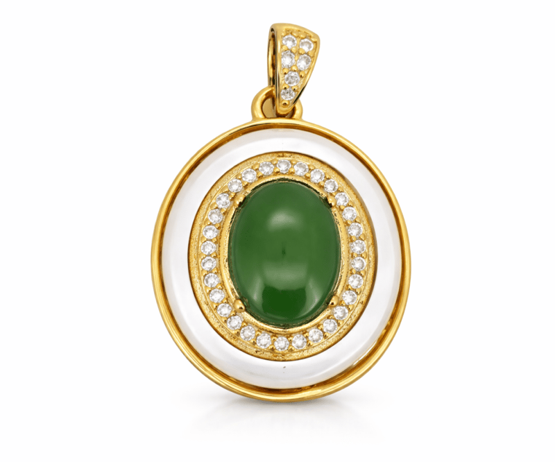 NATURAL JADEITE (TYPE A) & MOTHER OF PEARL (NACRE) PENDANT ON 925 SILVER - WITH CERTIFICATE