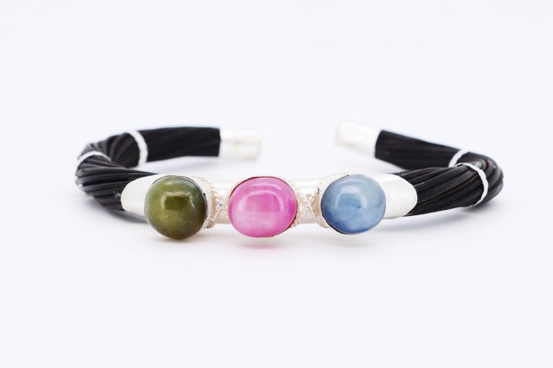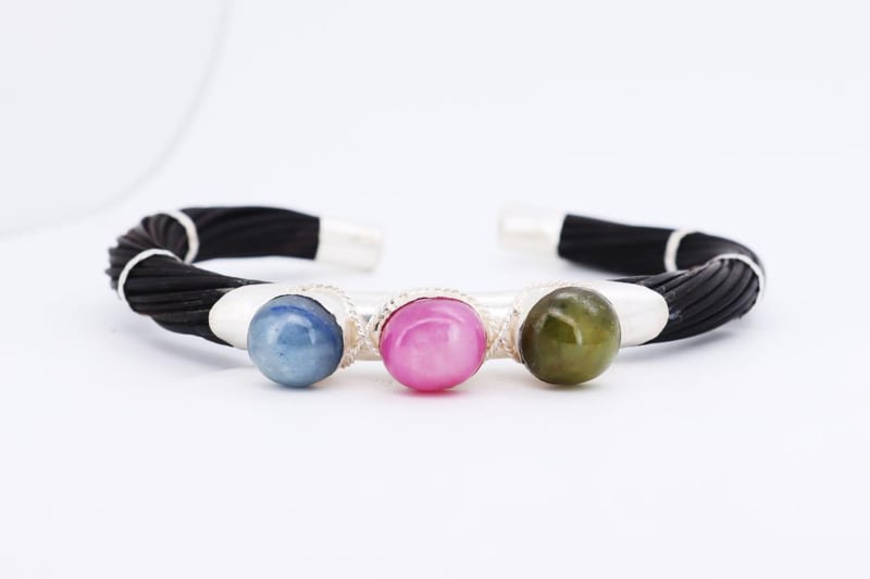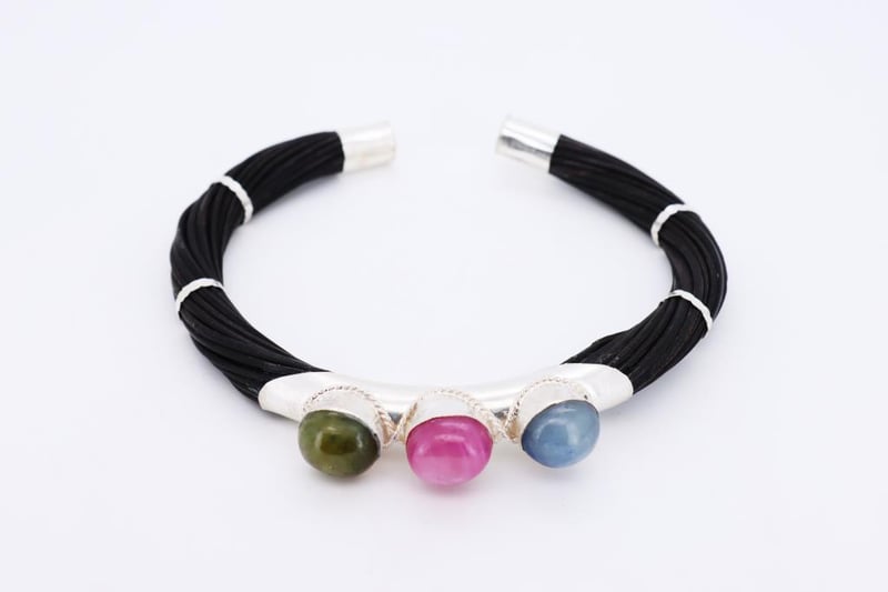 NATURAL EMERALD, RUBY & SAPPHIRE BANGLE ON 925 SILVER - WITH CERTIFICATE