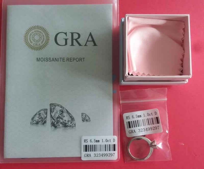 GRA CERTIFIED MOISSANITE 925 SILVER ENGAGEMENT RING Size: 6 Condition: Good - Refer Images 0163056+1FC