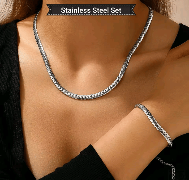 STAINLESS STEEL UNISEX NECKLACE AND BRACELET