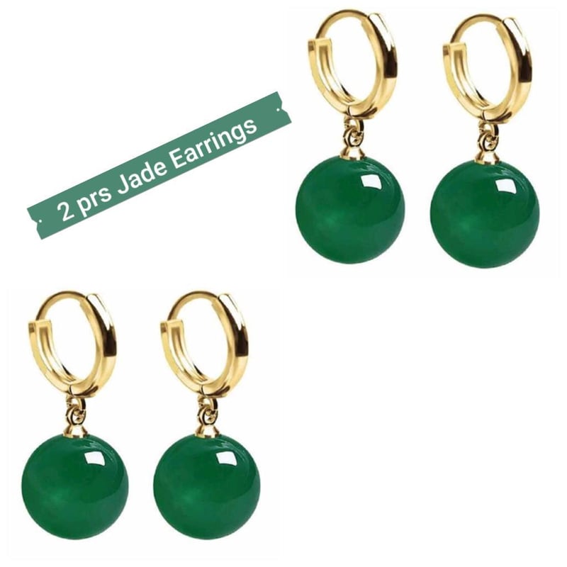 2 X PAIRS GOLD PLATED JADE HUGGIE EARRINGS