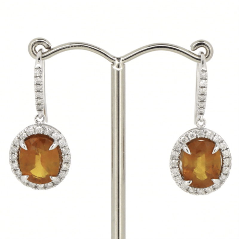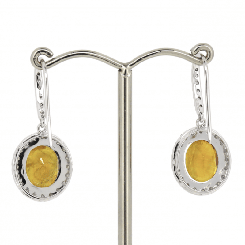The Centres Feature, 2 Oval Cut, Medium Greyish-Yellow, Heliodors (4.45Ct Tsw, Minor Eye Visible Inclusions), 4 Claw Set. Surrounding The Centres In Halos And Decorating The Drops Are, 56 Round Brilliant Cut, Diamonds (0.64Ct Tdw, J-K Colour, Si2-I2 Clarity), Bead Set With Millegrain Detail. The Earrings Have Shepherd Hooks With 'C' Hook Closures.