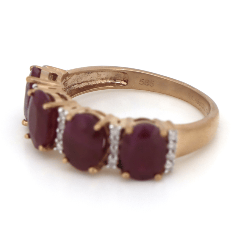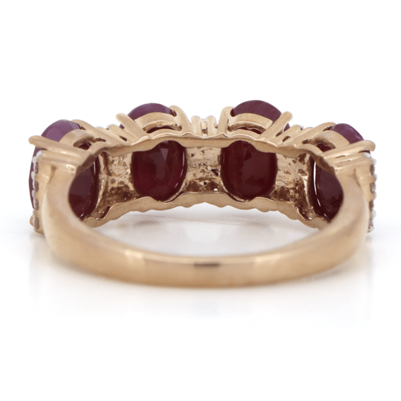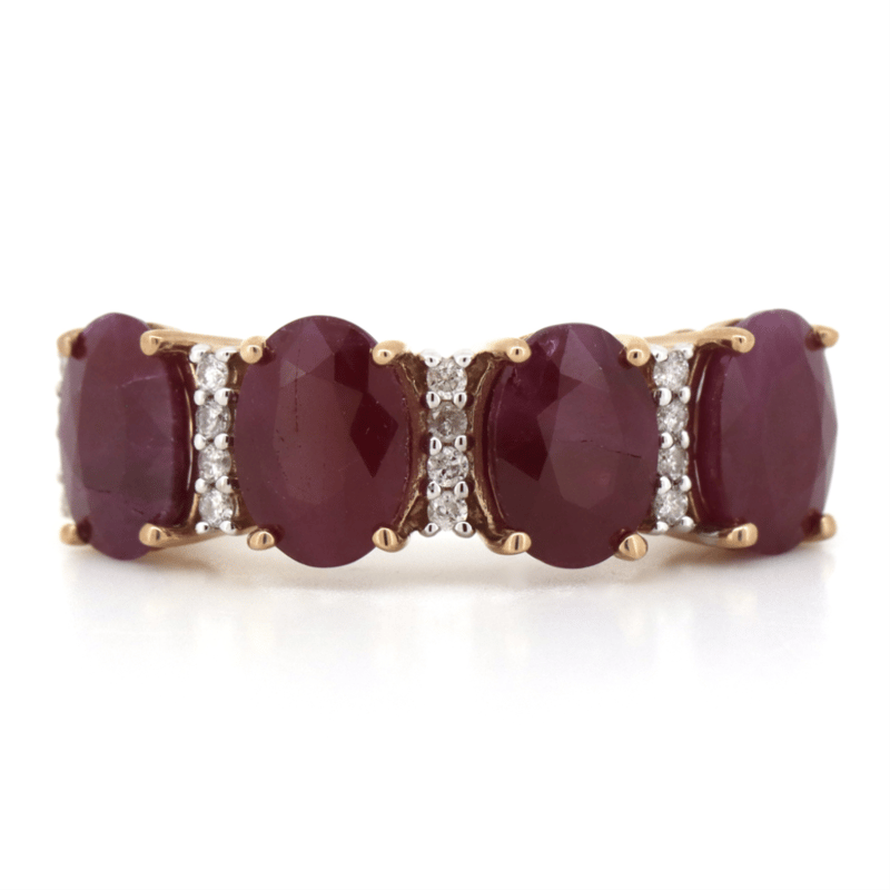 The Design Features, 4 Oval Cut, Medium-Dark Purplish-Red, Rubies (4.48Ct Tsw, Included), Individual Claw Set. Alternating In Rows Between Are, 20 Round Brilliant Cut, Diamonds (0.13Ct Tdw, J-K Colour, Si2-I2 Clarity), Bead Set White Gold. Ring Size N.