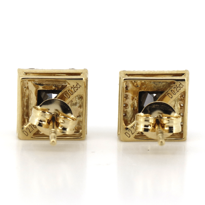 14K YELLOW GOLD, BLACK DIAMOND AND DIAMOND, HALO STUD EARRINGS. The Centres Feature, 2 Princess Cut, Black, Diamonds (2.78Ct Tdw, Opaque), 4 Claw Set. Surrounding The Centres In Halos Are, 48 Round Brilliant Cut, Diamonds (0.25Ct Tdw, H-K Colour, Si-I2+Clarity), Claw Set. The Earrings Have Post Backs, With 14K Yellow Gold Butterfly Clasps. Valuations Provided by an Independent Third-Party Professional Not Directly Associated With Lloyds Auctions at AUD $$11,200.00This valuation has been conducted by an independent third-party professional. The valuation amount is an assessment by the issuing valuer and does not reflect the auction value of the item. Any inquiries regarding the valuation should be directed to the issuing valuer (refer to contact details on the certificate), as Lloyds Auctions has no affiliation or influence over the valuation, the valuer, or the stated amount. Condition: Good - Refer Images 0645919+1434