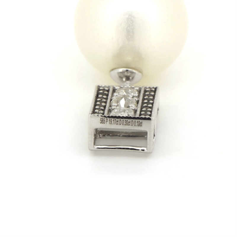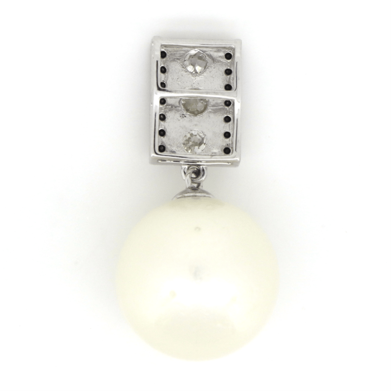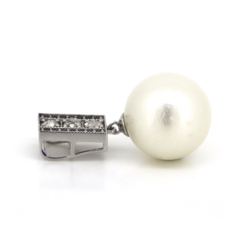 14K WHITE GOLD, WHITE CULTURED SOUTH SEA PEARL AND DIAMOND, PENDANT. The Design Features, One Near Round, White With Silver Overtones, Cultured South Sea Pearl (14.20Mm-15.20Mm Size, Good Luster, Natural Growth Blemishes). Decorating The Bail Are, 3 Round Brilliant Cut, Diamonds (0.30Ct Tdw, H-J Colour, Si-P1 Clarity), Micro-Bead Set. Flanked By, 14 Round Brilliant Cut, Black, Diamonds (0.10Ct Tdw, Opaque), Micro-Bead Set. Valuations Provided by an Independent Third-Party Professional Not Directly Associated With Lloyds Auctions at AUD $$8,250.00This valuation has been conducted by an independent third-party professional. The valuation amount is an assessment by the issuing valuer and does not reflect the auction value of the item. Any inquiries regarding the valuation should be directed to the issuing valuer (refer to contact details on the certificate), as Lloyds Auctions has no affiliation or influence over the valuation, the valuer, or the stated amount. Condition: Good - Refer Images 0645919+1437