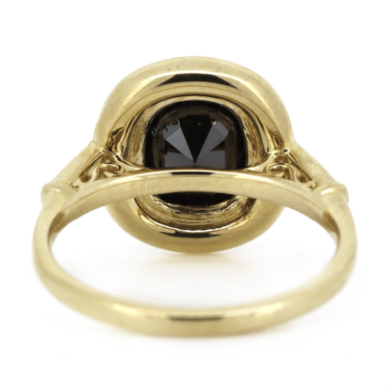 14K YELLOW GOLD, BLACK DIAMOND AND DIAMOND, HALO RING.