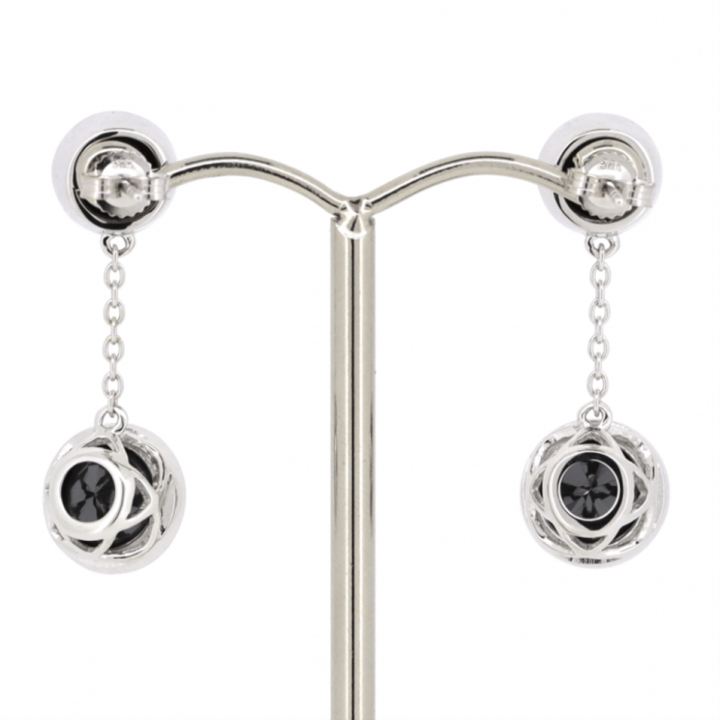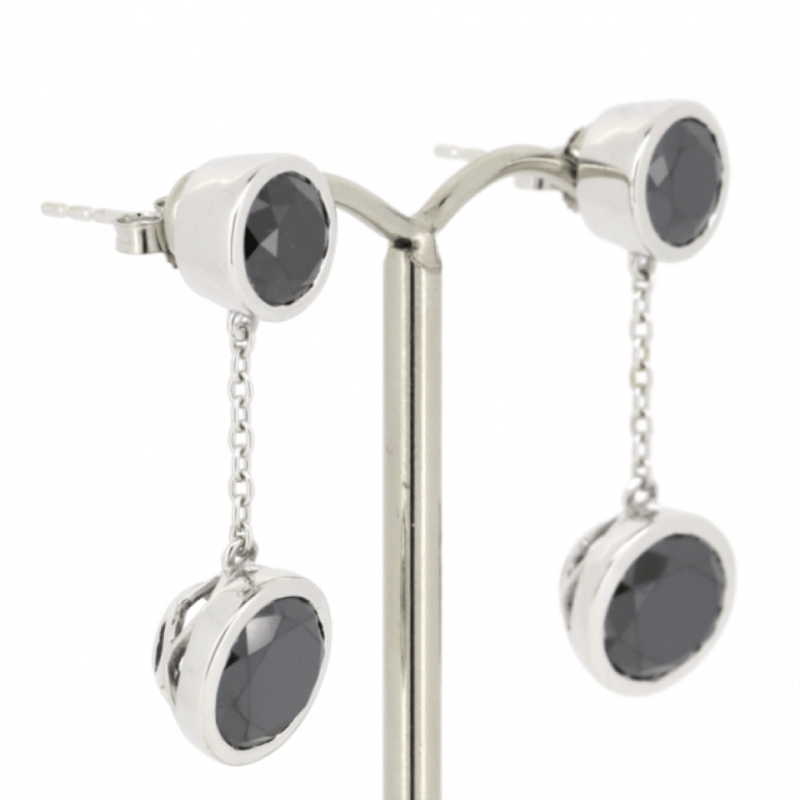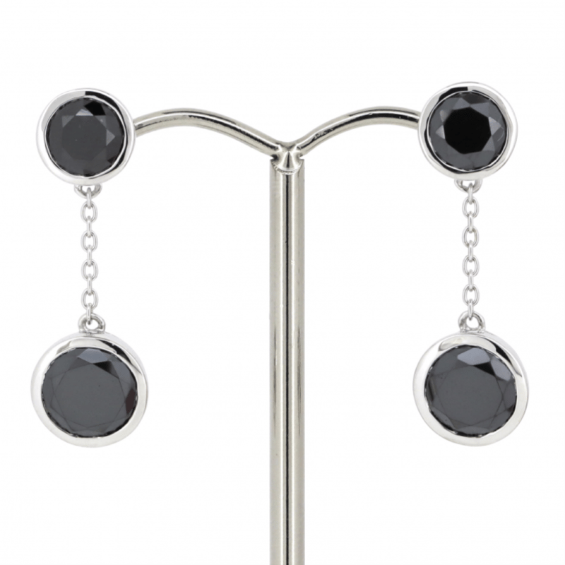 14K WHITE GOLD, BLACK MOISSANITE, CHAIN DROP EARRINGS.
