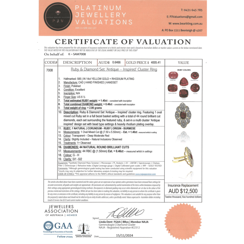 This valuation has been conducted by an independent third-party professional. The valuation amount is an assessment by the issuing valuer and does not reflect the auction value of the item.
