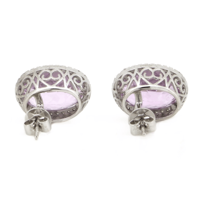 14K WHITE GOLD, KUNZITE AND DIAMOND, HALO STUD EARRINGS. The Centres Feature, 2 Oval Cut, Pinkish-Purple, Kunzites (10.81Ct Tsw, Very Minor Eye Visible Inclusions), 4 Claw Set. Surrounding The Centres In Halos Are, 68 Round Brilliant Cut, Diamonds (0.24Ct Tdw, J-K Colour, Si2-I2 Clarity), Micro-Claw Set. The Earrings Have Post Backs, With 14K White Gold Butterfly Clasps. Valuations Provided by an Independent Third-Party Professional Not Directly Associated With Lloyds Auctions at AUD $$10,790.00This valuation has been conducted by an independent third-party professional. The valuation amount is an assessment by the issuing valuer and does not reflect the auction value of the item. Any inquiries regarding the valuation should be directed to the issuing valuer (refer to contact details on the certificate), as Lloyds Auctions has no affiliation or influence over the valuation, the valuer, or the stated amount. Condition: Good - Refer Images 0645923+1524