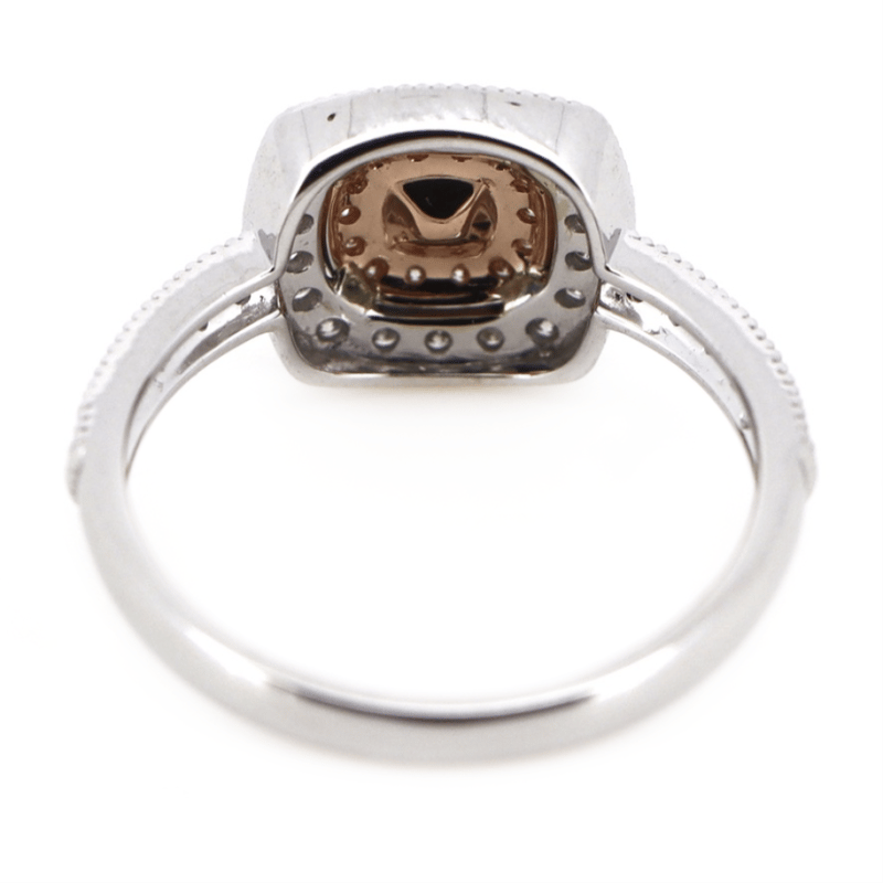 14K WHITE/ROSE GOLD, PINK DIAMOND AND DIAMOND, DOUBLE HALO RING. The Centre Features, One Cushion Cut, Pink-Champagne, Diamond (0.15Ct, Si1 Clarity), 4 Claw Set In Rose Gold. Surrounding The Centre In A Halo Are, 14 Round Brilliant Cut, Blush Pink, Diamonds (0.075Ct Tdw, Si-P1 Clarity), Micro-Bead Set In Rose Gold With Millegrain Detail. Embellishing The Design And Band Are, 30 Round Brilliant Cut, Diamonds (0.335Ct Tdw, H-K Colour, P2+ Clarity), Bead Set In White Gold With A Millegrain Detail. Ring Size M 1/2. Valuations Provided by an Independent Third-Party Professional Not Directly Associated With Lloyds Auctions at AUD $$12,500.00This valuation has been conducted by an independent third-party professional. The valuation amount is an assessment by the issuing valuer and does not reflect the auction value of the item. Any inquiries regarding the valuation should be directed to the issuing valuer (refer to contact details on the certificate), as Lloyds Auctions has no affiliation or influence over the valuation, the valuer, or the stated amount. Condition: Good - Refer Images 0645923+1544