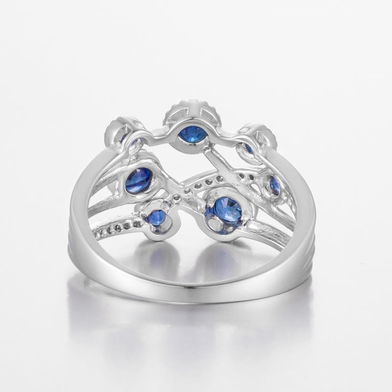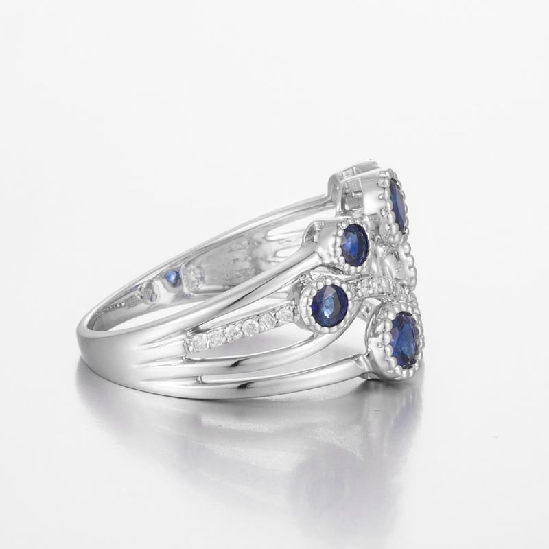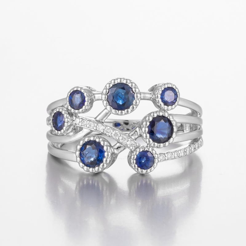 Featuring Centre, 7 Round Cut, Deep Moderate Royal Blue Australian Sapphires (1.21Ct Tsw, Moderately Inlcuded), Bezel Set, With 22 Round Brilliant Cut Diamonds (0.10Ct Tdw, G-H Colour, Vs1-Vs2 Clarity), Bead Set. Ring Size O.