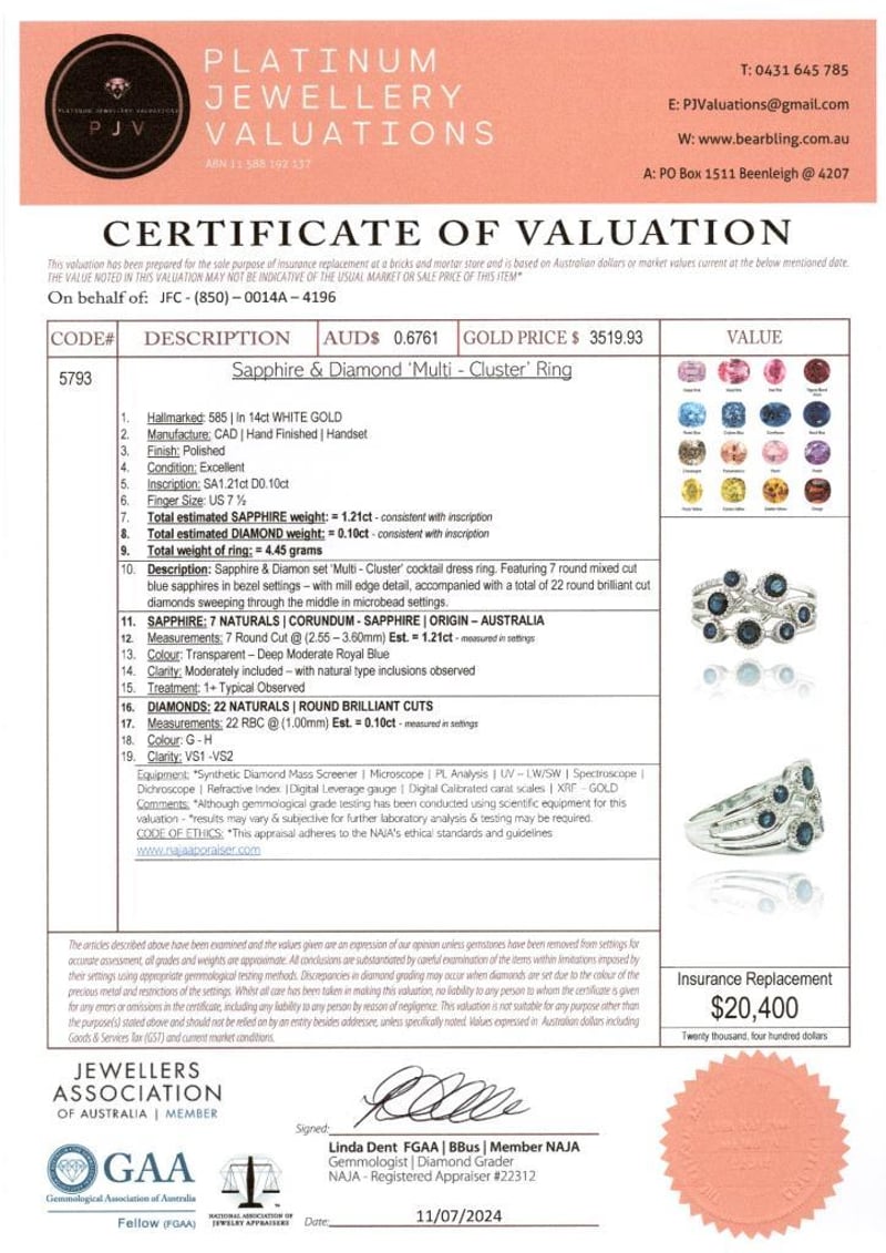 14CT WHITE GOLD AUSTRALIAN SAPPHIRE AND DIAMOND CLUSTER RING