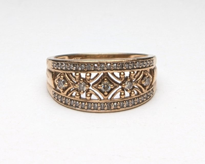 10CT YELLOW GOLD DIAMOND RING WITH 5 BRILLIANT CUT DIAMONDS 0.10CT & 40 BRILLIANT CUT DIAMONDS 0.20CT