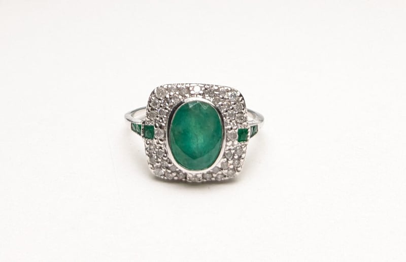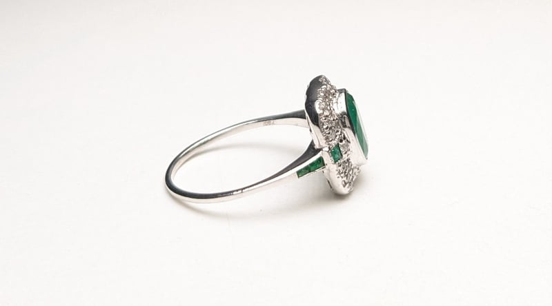 Featuring Centre Oval Cut Emerald, 1.32Ct In Weight, Included In Clarity And Medium Green In Colour. 6 Rectangle Checker Board Cut Emeralds, Approximately 0.12Ct And Medium In Colour. 36 Brilliant Cut Diamonds, Pave Set, 0.35Ct. P2 Clarity And G/H In Colour. Ring Size K.