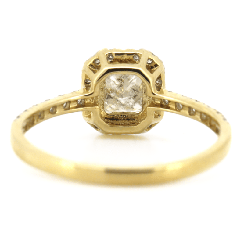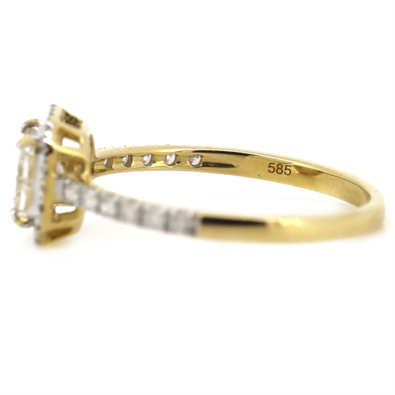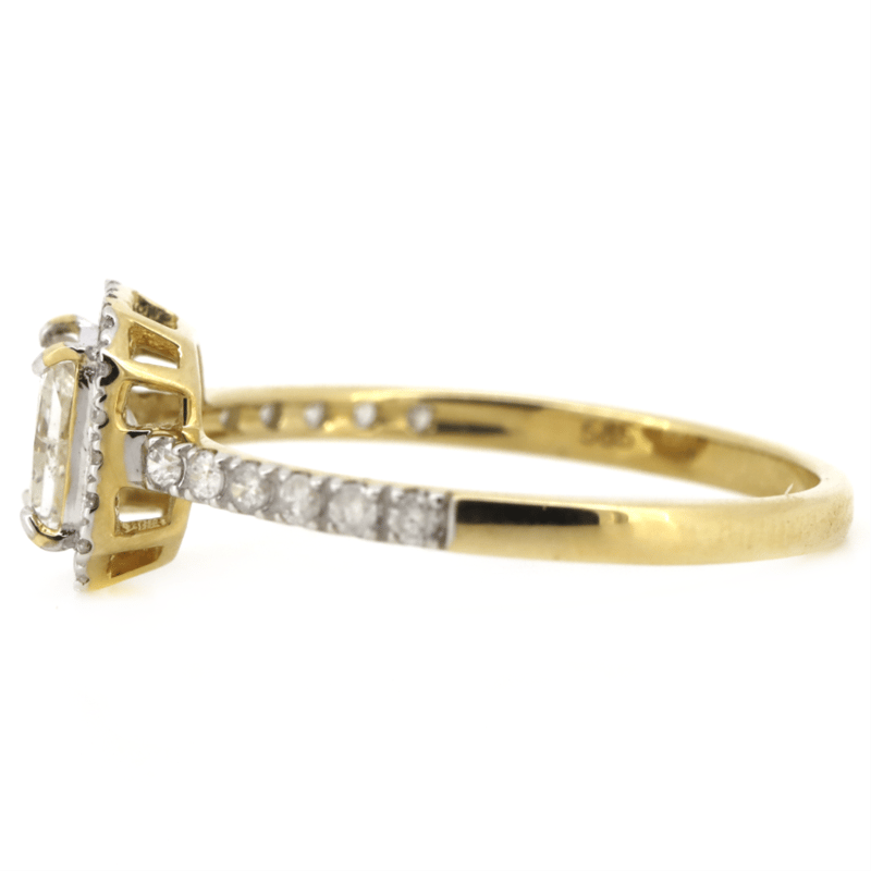 14K YELLOW GOLD AND DIAMOND, HALO RING.