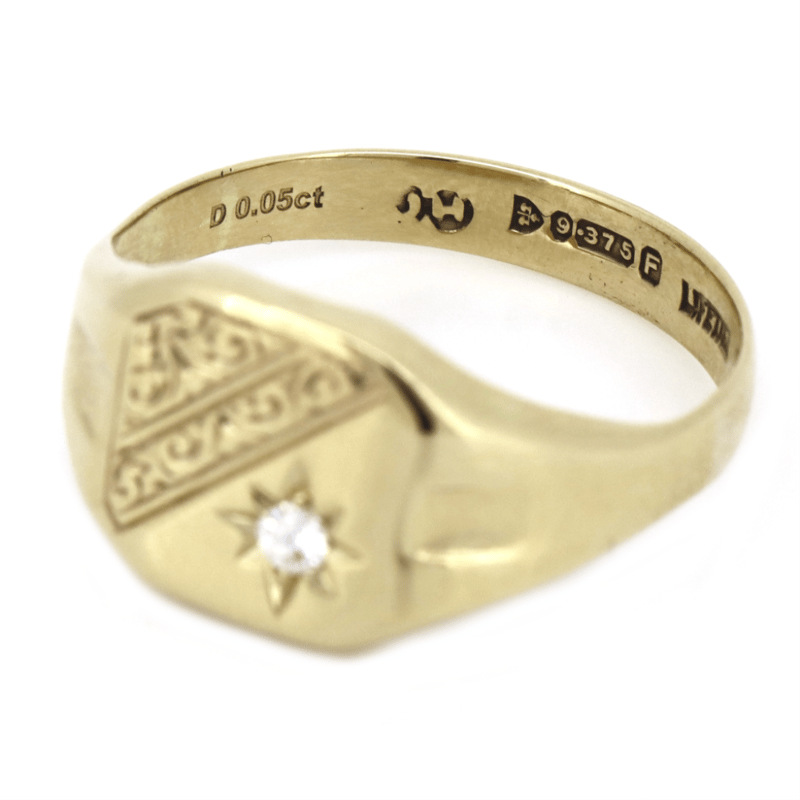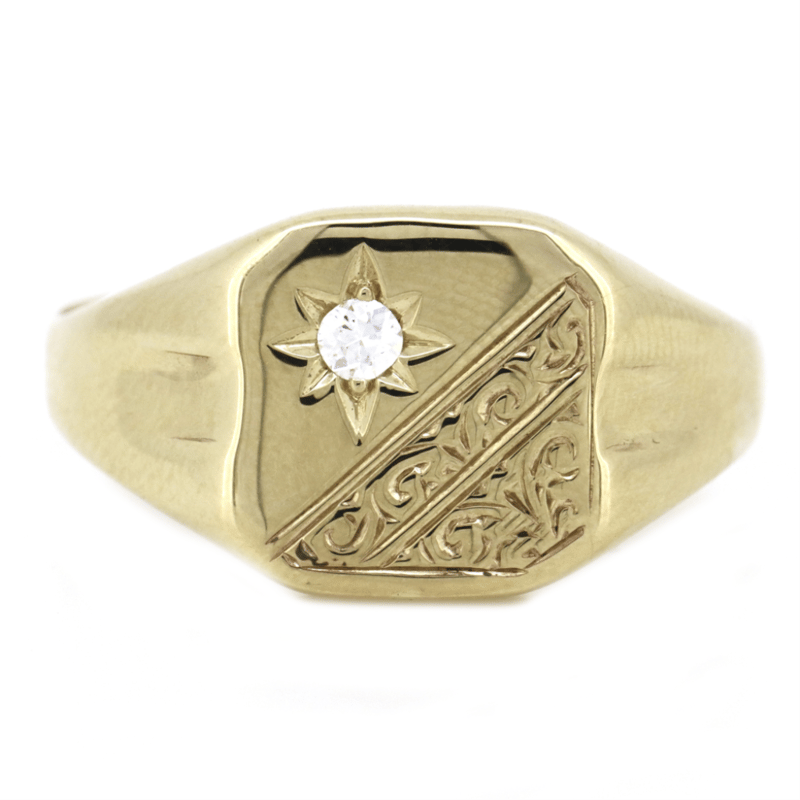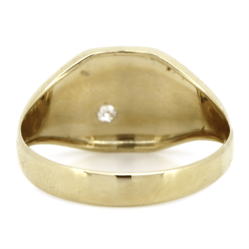 9K YELLOW GOLD AND DIAMOND, SIGNET RING.