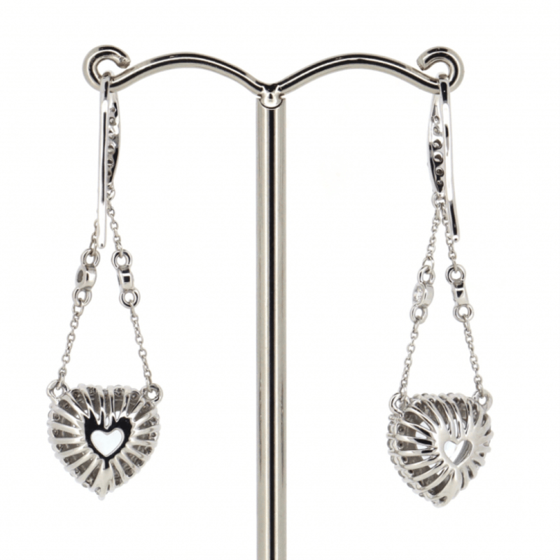 The Centres Feature, 2 Heart Cut, Light Greyish-Blue, Aquamarines (2.22Ct Tsw, Minor Eye Visible Inclusions), Individual Claw Set. Surrounding The Centres Feature, 56 Round Brilliant Cut, Diamonds (0.59Ct Tdw, J-K Colour, Si2-I2 Clarity), Individual Bezel/Bead Set. The Earrings Have Shepherd Hooks.
