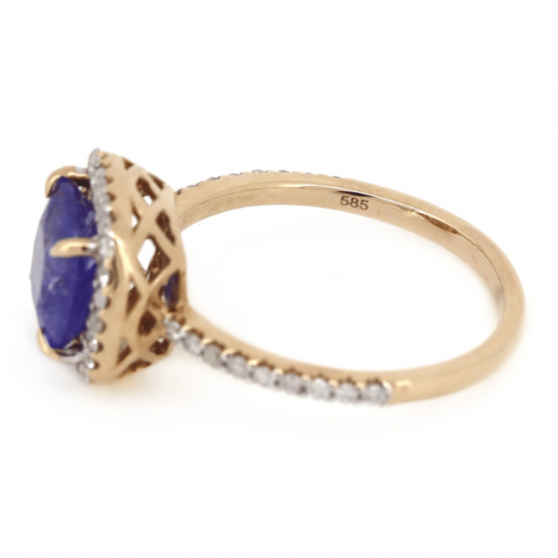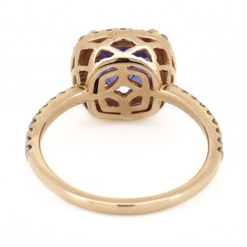 14K ROSE GOLD, TANZANITE AND DIAMOND, HALO RING. The Centre Features, One Cushion Cut, Purplish-Blue, Tanzanite (2.67Ct, Eye Visible Inclusions), Claw Set. Surrounding The Centre In A Halo And Decorating The Band Are, 42 Round Brilliant Cut, Diamonds (0.34Ct Tdw, H-J Colour, Si2-I2 Clarity), Shared Claw Set In White Gold. Ring Size N. The Tanzanite Has Some Natural Inclusions That Have Reached The Surface. Valuations Provided by an Independent Third-Party Professional Not Directly Associated With Lloyds Auctions at AUD $$6,510.00This valuation has been conducted by an independent third-party professional. The valuation amount is an assessment by the issuing valuer and does not reflect the auction value of the item. Any inquiries regarding the valuation should be directed to the issuing valuer (refer to contact details on the certificate), as Lloyds Auctions has no affiliation or influence over the valuation, the valuer, or the stated amount. 0645927+1617