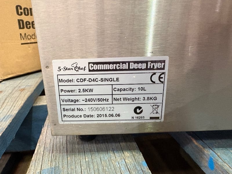 5-Star Chef Commercial Single Tank Deep Fryer, Model CDF-D4C-SINGLE. Manufacture Date 2015. Condition : Used.