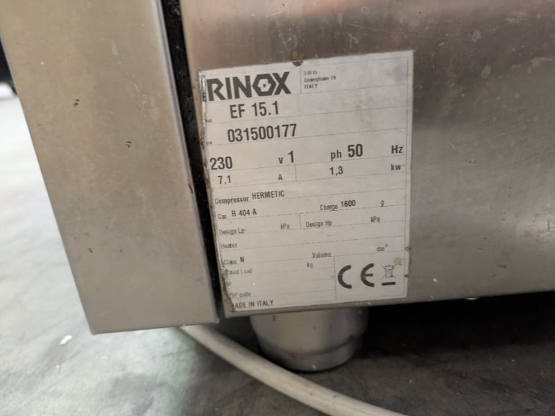 Irinox EF 15.1, Blast Chiller UNTESTED Dimensions Approx : H830 x W720 x D750 mm