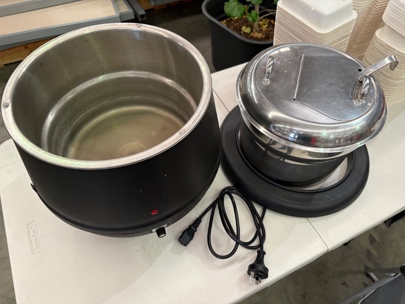 Commercial Soup Kettle / Soup Warmer with Hinged Lid and Ladle.