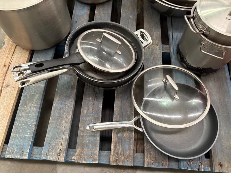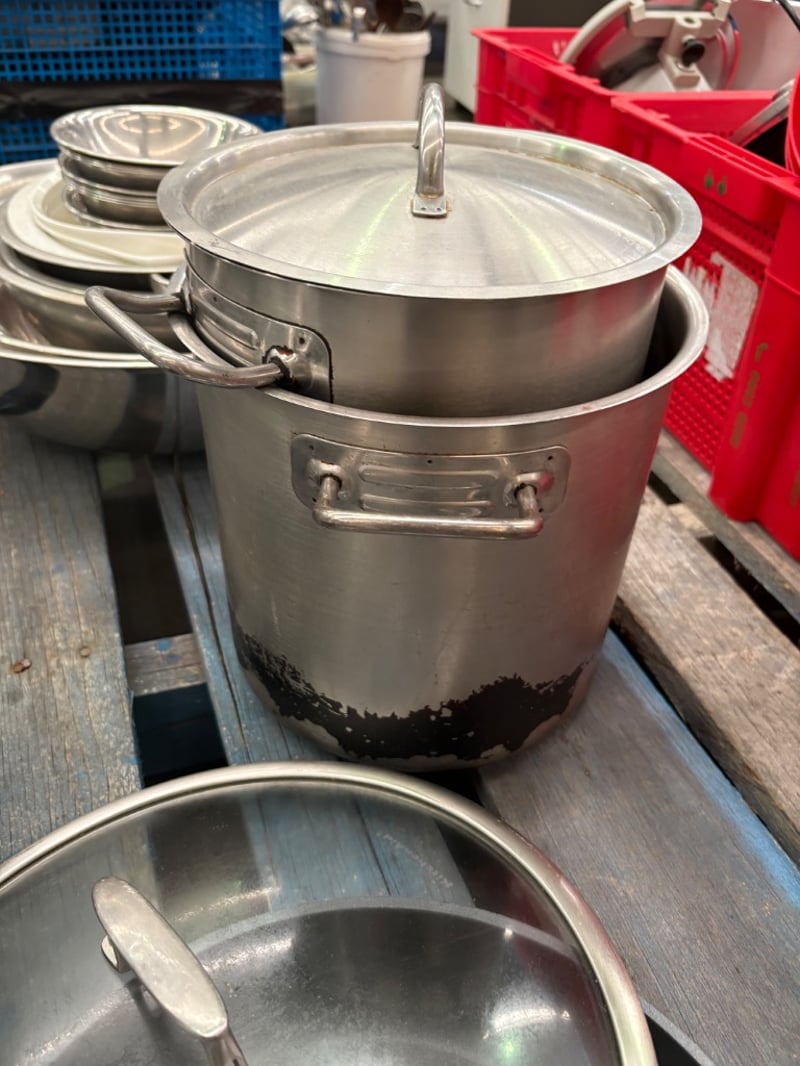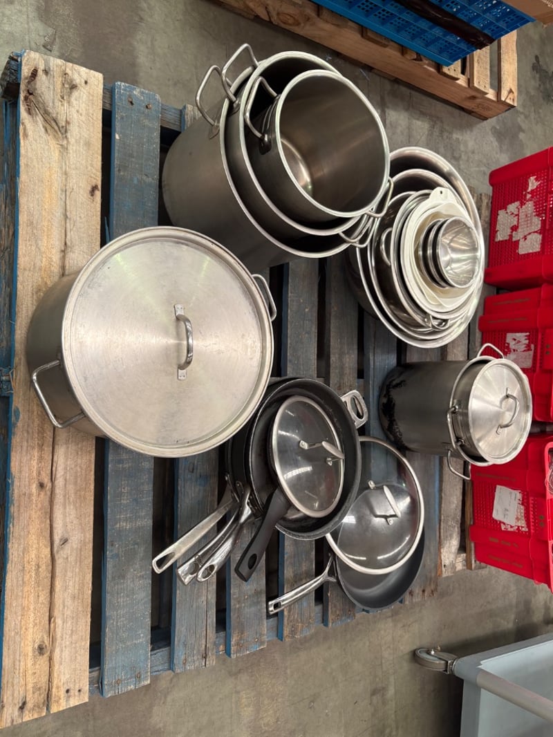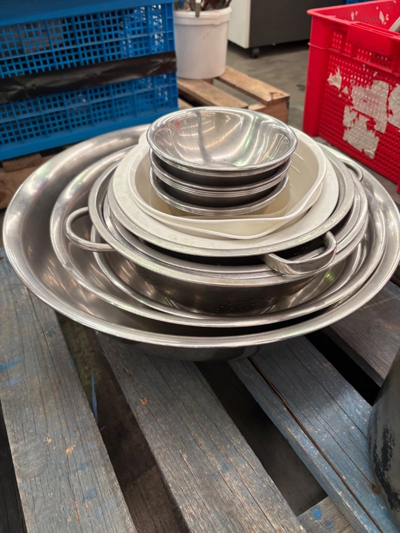 Assorted Stainless Bowls, Pots and Pans. Used condition. Sold as lot
