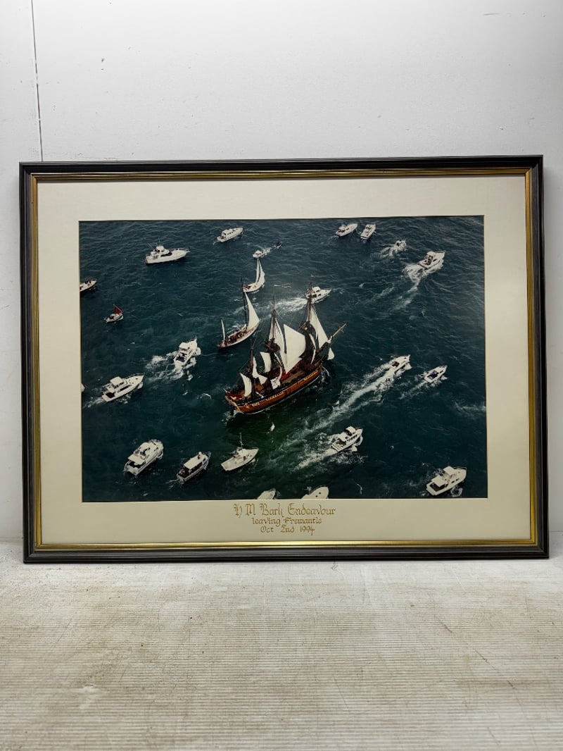 Artwork, piece showing HM Bark Endeavour ship