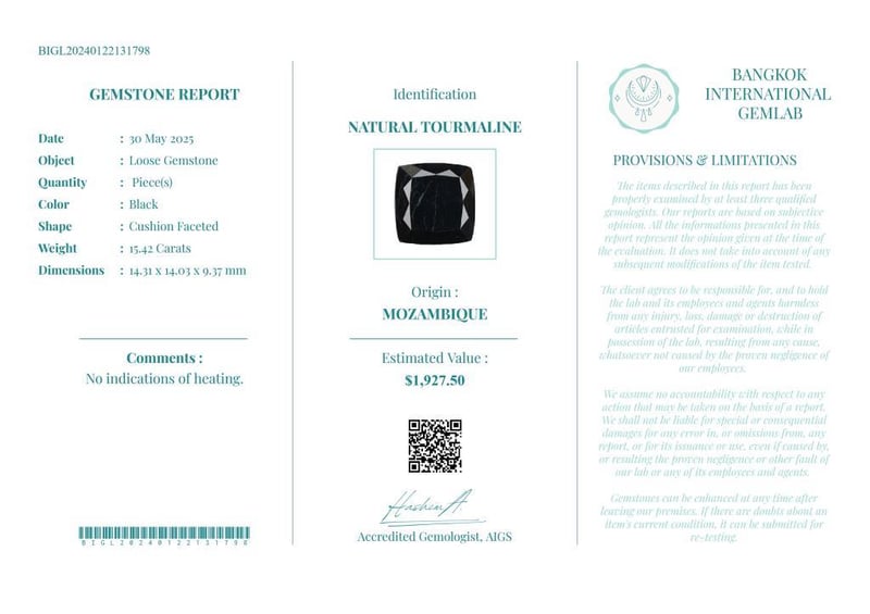 • Verify Report Online At Www.Bangkokinternationalgemlab.Co