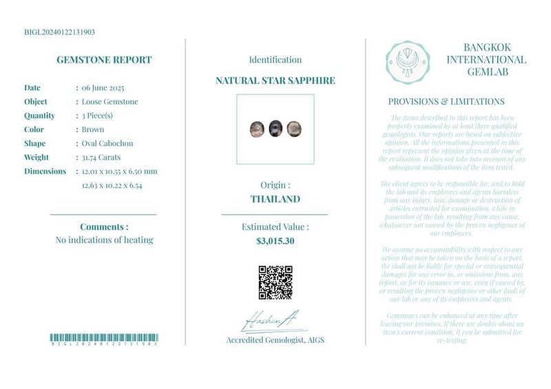 • Verify Report Online At Www.Bangkokinternationalgemlab.Co