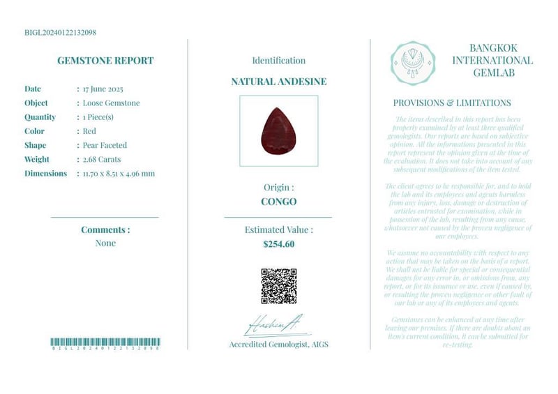 • Verify Report Online At Www.Bangkokinternationalgemlab.Co
