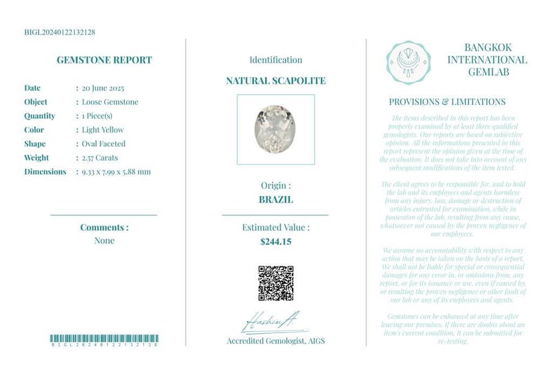 • Verify Report Online At Www.Bangkokinternationalgemlab.Co