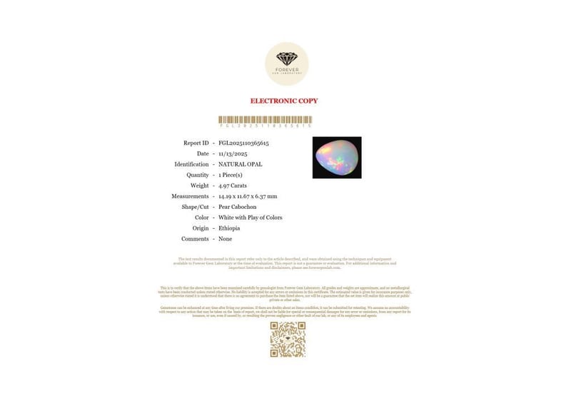 4.97 CARATS NATURAL OPAL - WHITE WITH PLAY OF COLORS