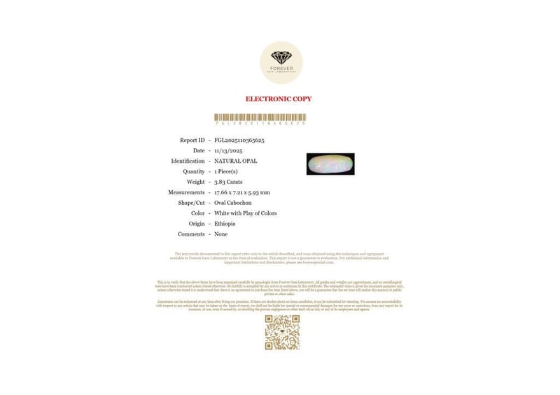 3.83 CARATS NATURAL OPAL - WHITE WITH PLAY OF COLORS