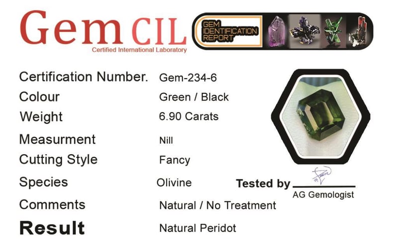 6.90 CARATS NATURAL RARE LUDWIGITE PERIDOT 6.90 Carats Natural Rare Ludwigite PeridotStone = Natural PeridotWeight = 6.90 CaratsColour = Green / BlackCut = Fancy Inclusion = LudwigiteNote = Gem Cil, Certified, Precise Custom Cut (Not Commercial) Condition: Good - Refer Images 0488425+6