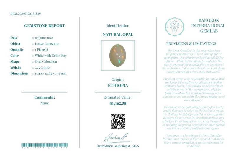 7.75 CARATS CERTIFIED NATURAL OPAL