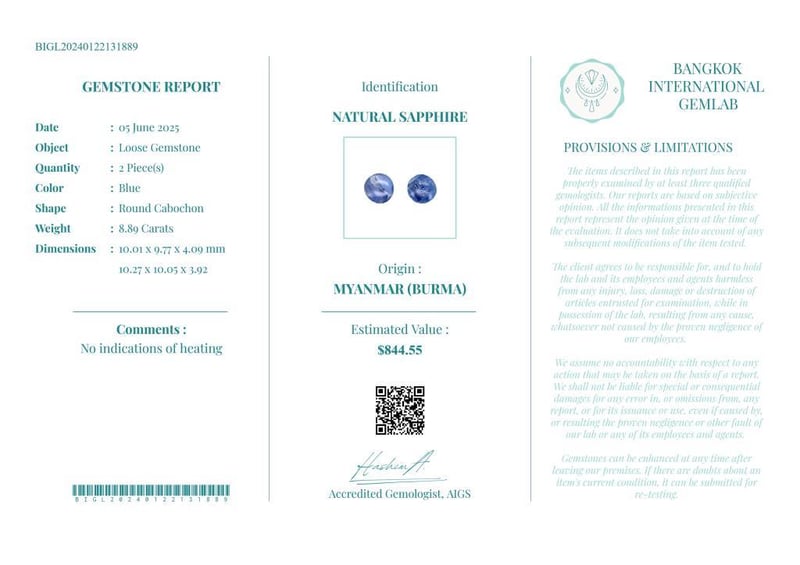 • Verify Report Online At Www.Bangkokinternationalgemlab.Co