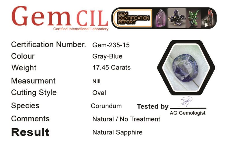 17.45 Carats Natural Certified Sapphire