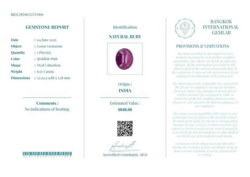 • Verify Report Online At Www.Bangkokinternationalgemlab.Co