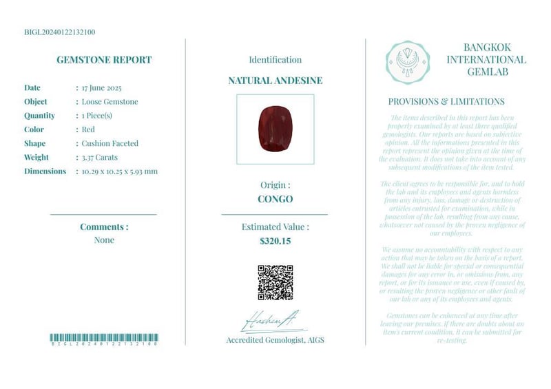 • Verify Report Online At Www.Bangkokinternationalgemlab.Co