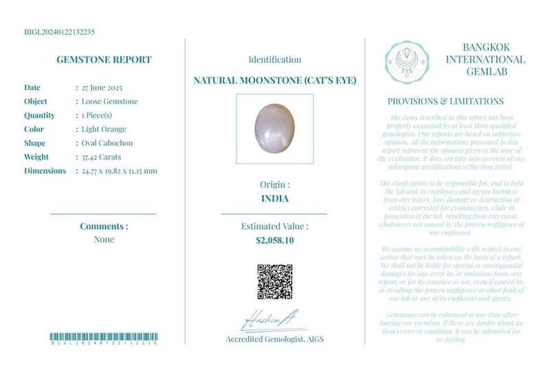 37.42 CARATS CERTIFIED NATURAL MOONSTONE (CAT'S EYE)