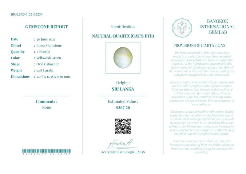 • Verify Report Online At Www.Bangkokinternationalgemlab.Co