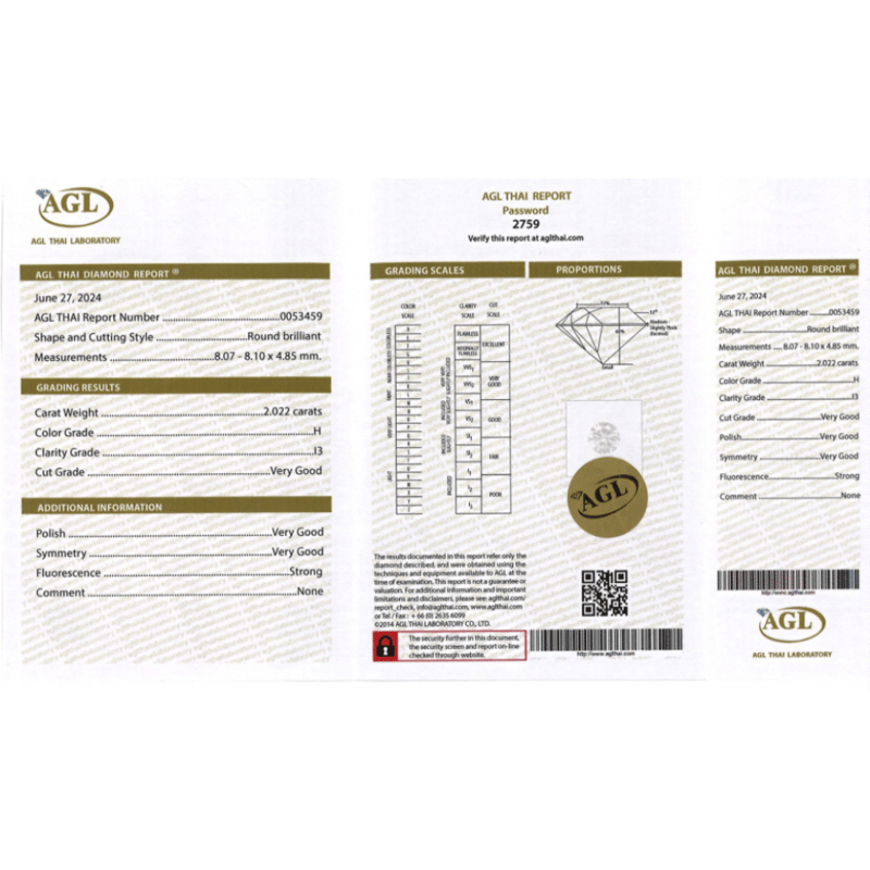 2.022CT CERTIFIED, NATURAL DIAMOND Round Brilliant Cut, H Colour, I3 Clarity, Loose, Unset. Stone Comes Sealed With Agl Report: 0053459. Valuations Provided by an Independent Third-Party Professional Not Directly Associated With Lloyds Auctions at AUD $$17,000.00This valuation has been conducted by an independent third-party professional. The valuation amount is an assessment by the issuing valuer and does not reflect the auction value of the item. Any inquiries regarding the valuation should be directed to the issuing valuer (refer to contact details on the certificate), as Lloyds Auctions has no affiliation or influence over the valuation, the valuer, or the stated amount. Condition: Good - Refer Images 0645920+2102