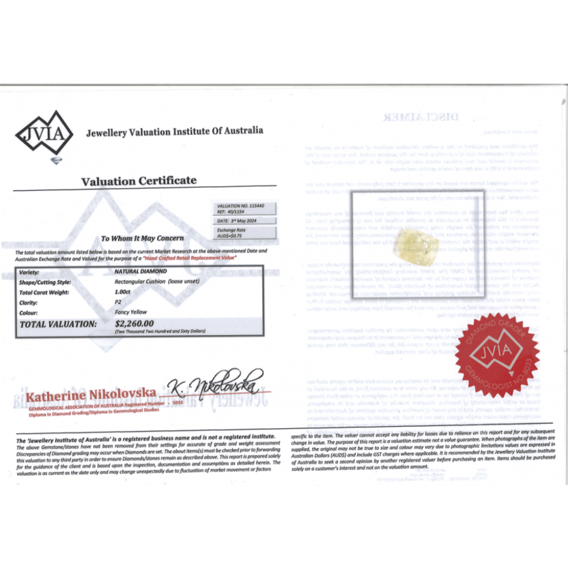 Rectangular Cushion Cut, Fancy Yellow, P2 Clarity, Loose, Unset.
