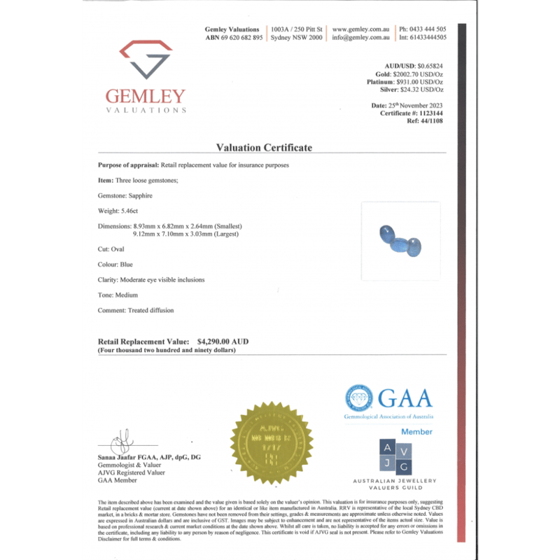 5.46CT TSW X 3, NATURAL BLUE SAPPHIRES