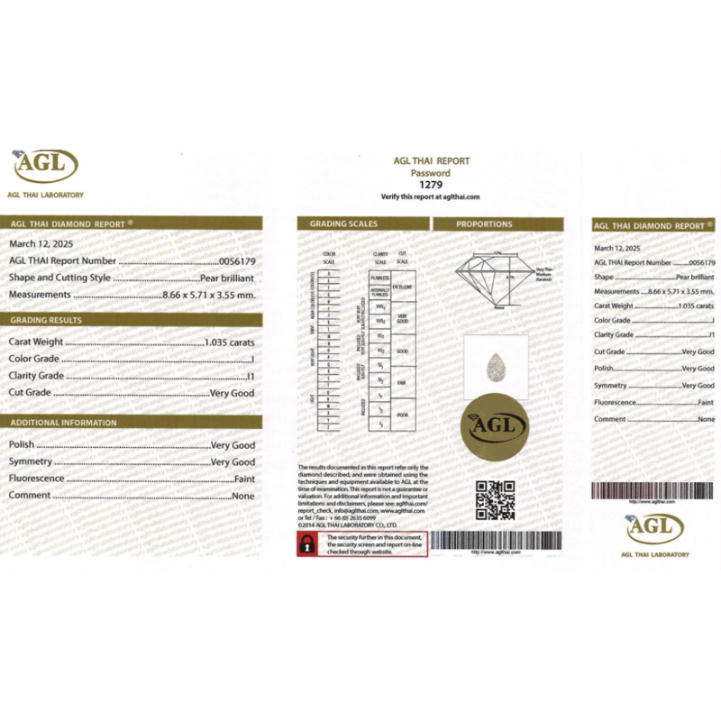 Pear Brilliant Cut, I Colour, I1 Clarity, Loose, Unset. Stone Comes Sealed With Agl Report: 0056179.