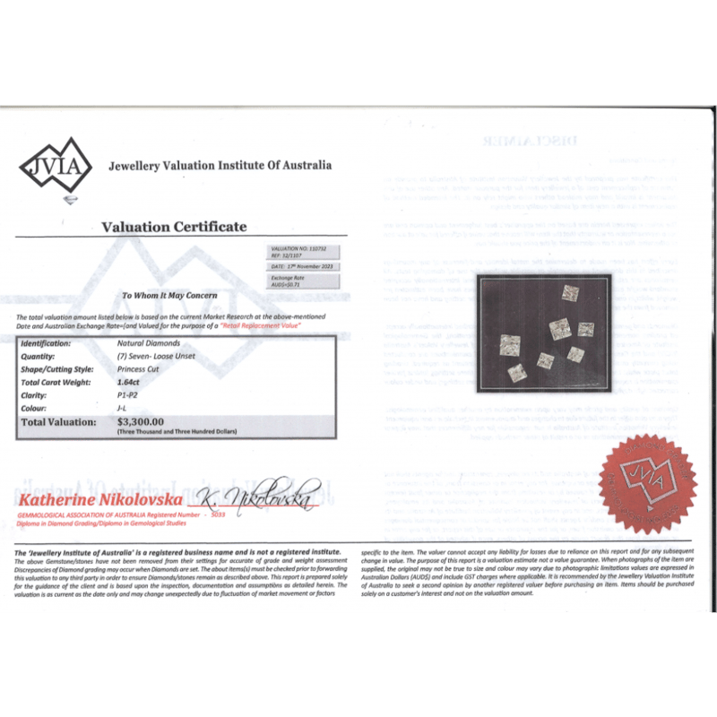 Princess Cut, J-L Colour, P1-P2 Clarity, Loose, Unset.