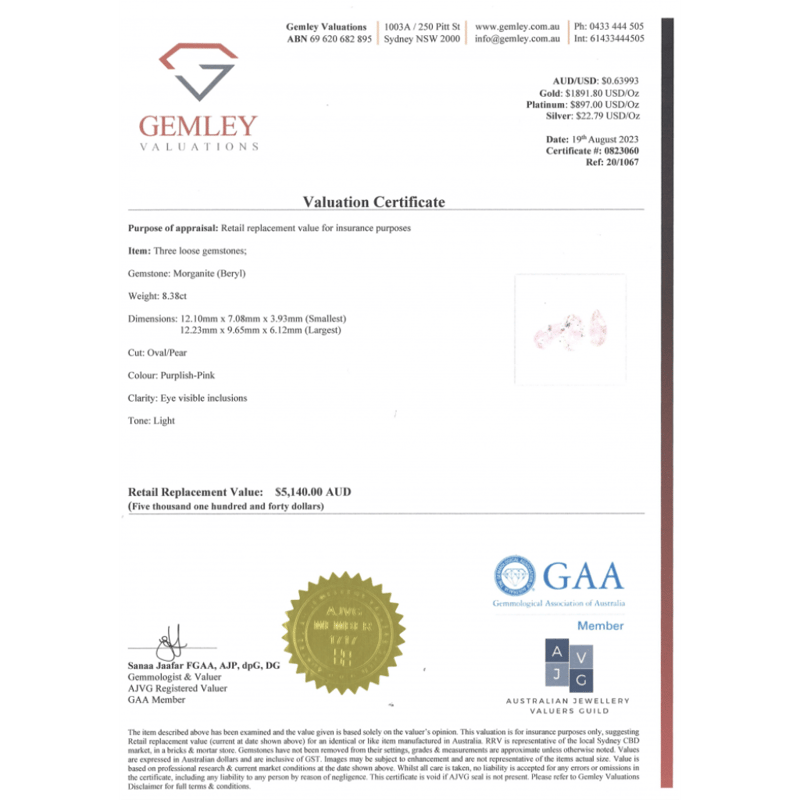 This valuation has been conducted by an independent third-party professional. The valuation amount is an assessment by the issuing valuer and does not reflect the auction value of the item.
